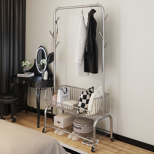 轻奢晾衣架落地卧室内挂衣架移动衣帽架家用隔夜衣服包收纳置物架