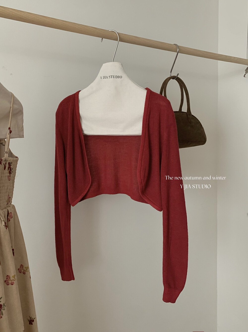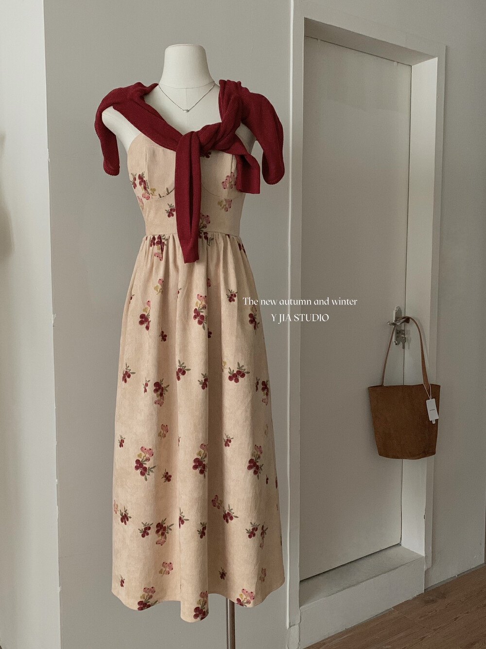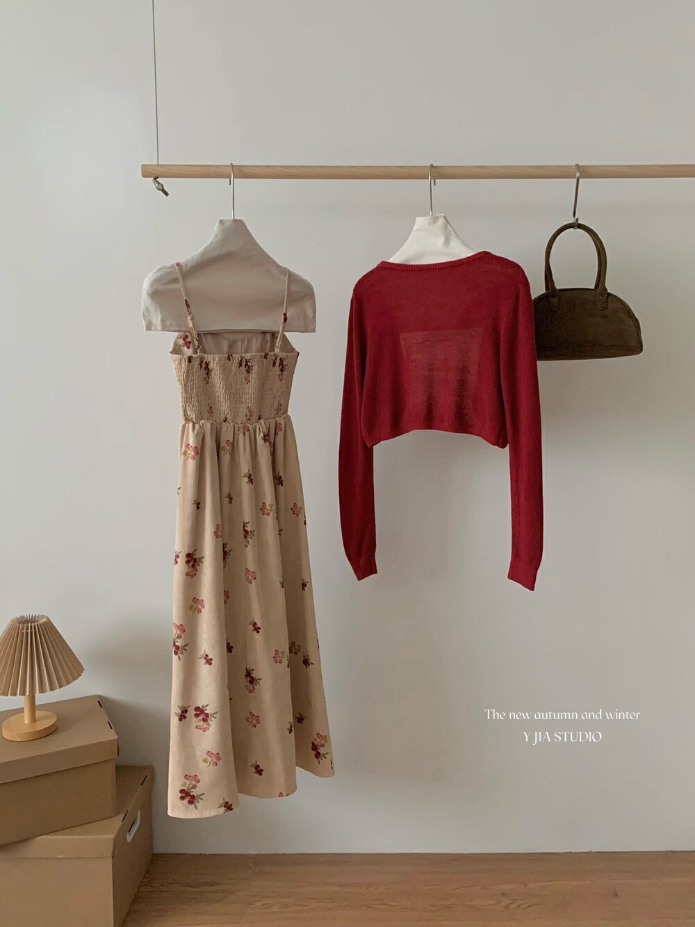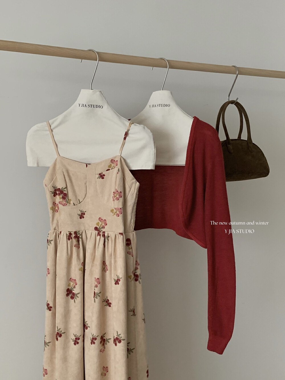套装 山楂树之恋甜美复古碎花吊带裙红色针织开衫 1975 伊嘉 Y.JIA