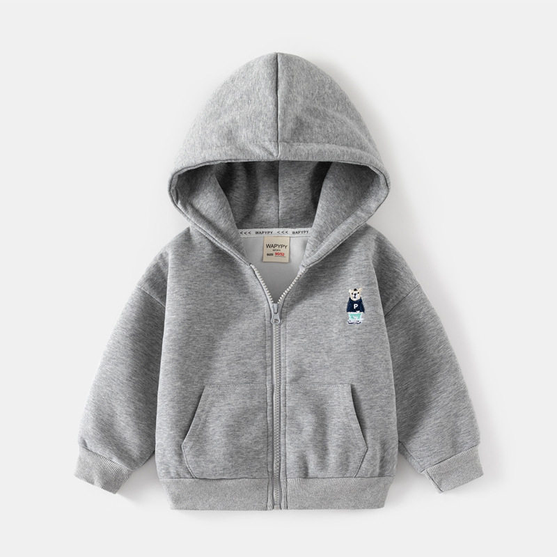 外套简约开衫 男童复合加厚宝宝拉链衫 潮 新款 儿童连帽卫衣2025春装