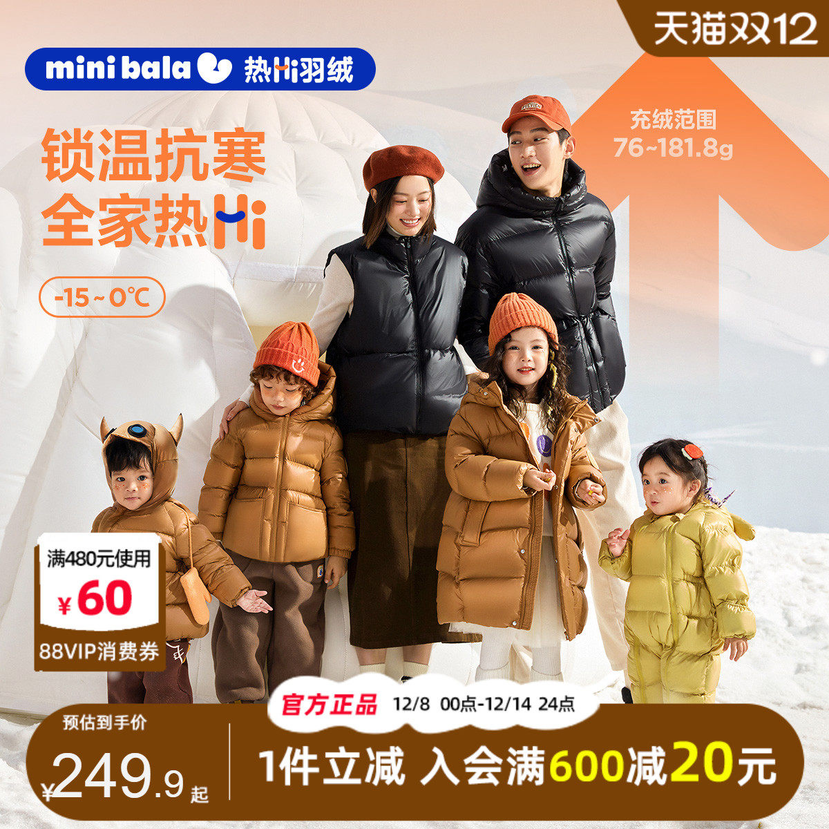 儿童加厚黑金外套 亲子装 迷你巴拉巴拉男童女童羽绒服2024冬装 新款