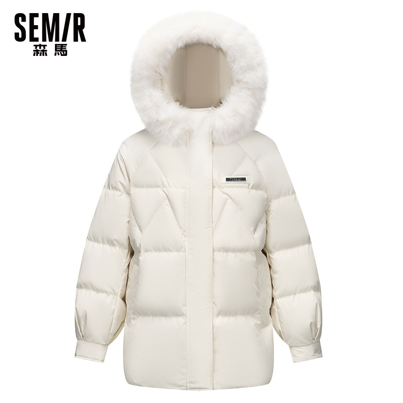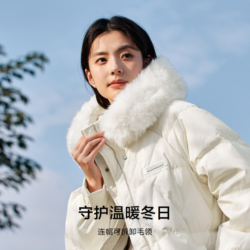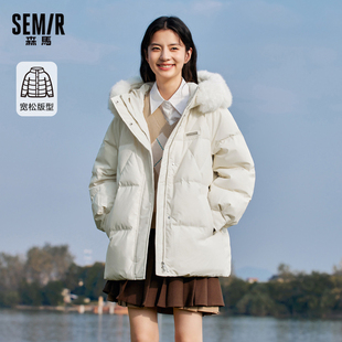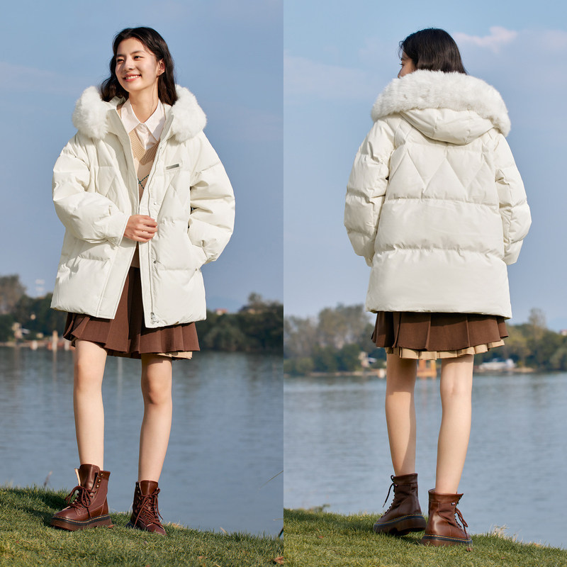 小个子宽松外套正品 森马羽绒服女中长款 新款 2025冬季 毛领连帽冬装