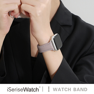 iserisewatch适用applewatch11表带iwatchs10手表se苹果手表s9真皮质夏天小蛮腰荔枝纹磁吸41mm45小众高级女