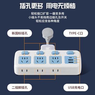 品牌插座插排拖接线板多功能插板宿舍带线分控大功率桌面排插座板