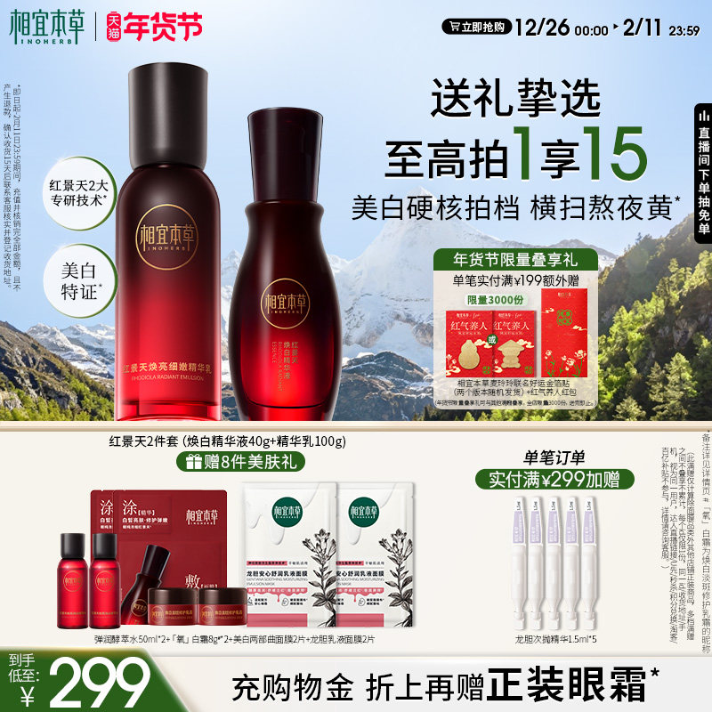美白保湿 相宜本草红景天焕亮紧致水乳面霜洁面套装 麦玲玲同款