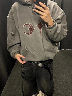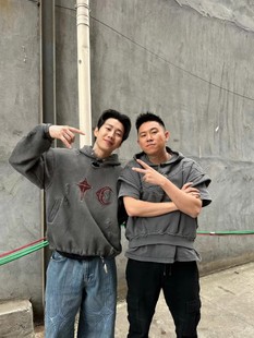 vibe带帽衫 脏洗水洗破坏帽衫 卫衣 Club社长朴宰范同款 想到你Thug