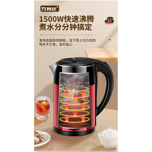 万利达烧水壶家用耐用加厚保温一体宿舍开水煮茶壶大容量电热水壶