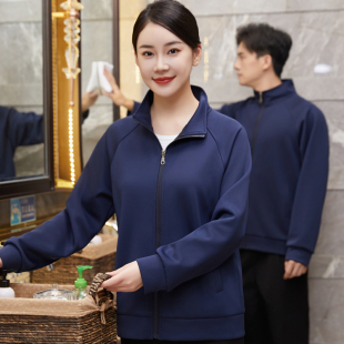 物业保洁工作服长袖 酒店客房家政养老护工清洁阿姨工作服加绒外套