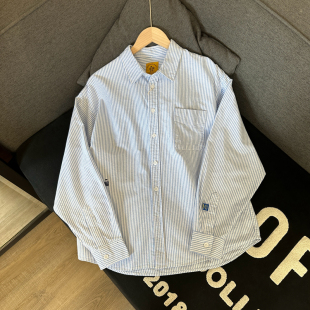 衬衫 干干净净 文艺条纹休闲长袖 刺绣点缀 男 cityboy宽松廓形衬衣