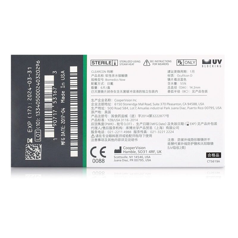 库博光学纯晰月抛隐形近视眼镜库博生产学生女高清 自营