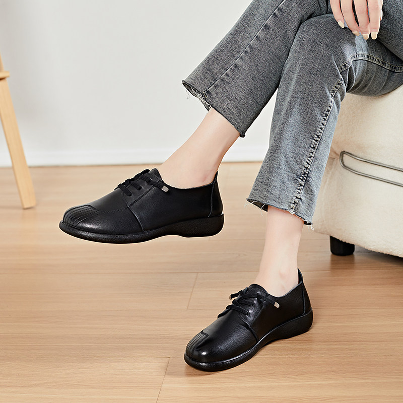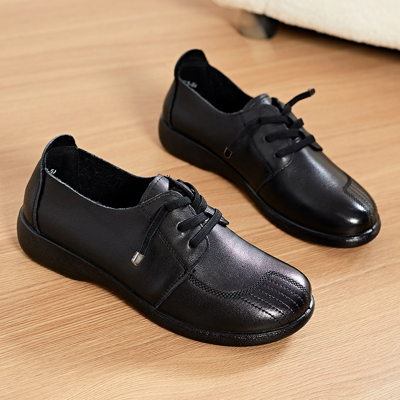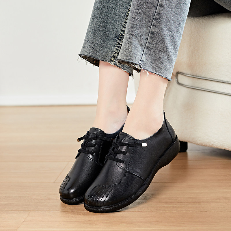 子牛皮透气中年女士皮鞋 真皮舒适软底中老年女鞋 单鞋 富贵鸟妈妈鞋