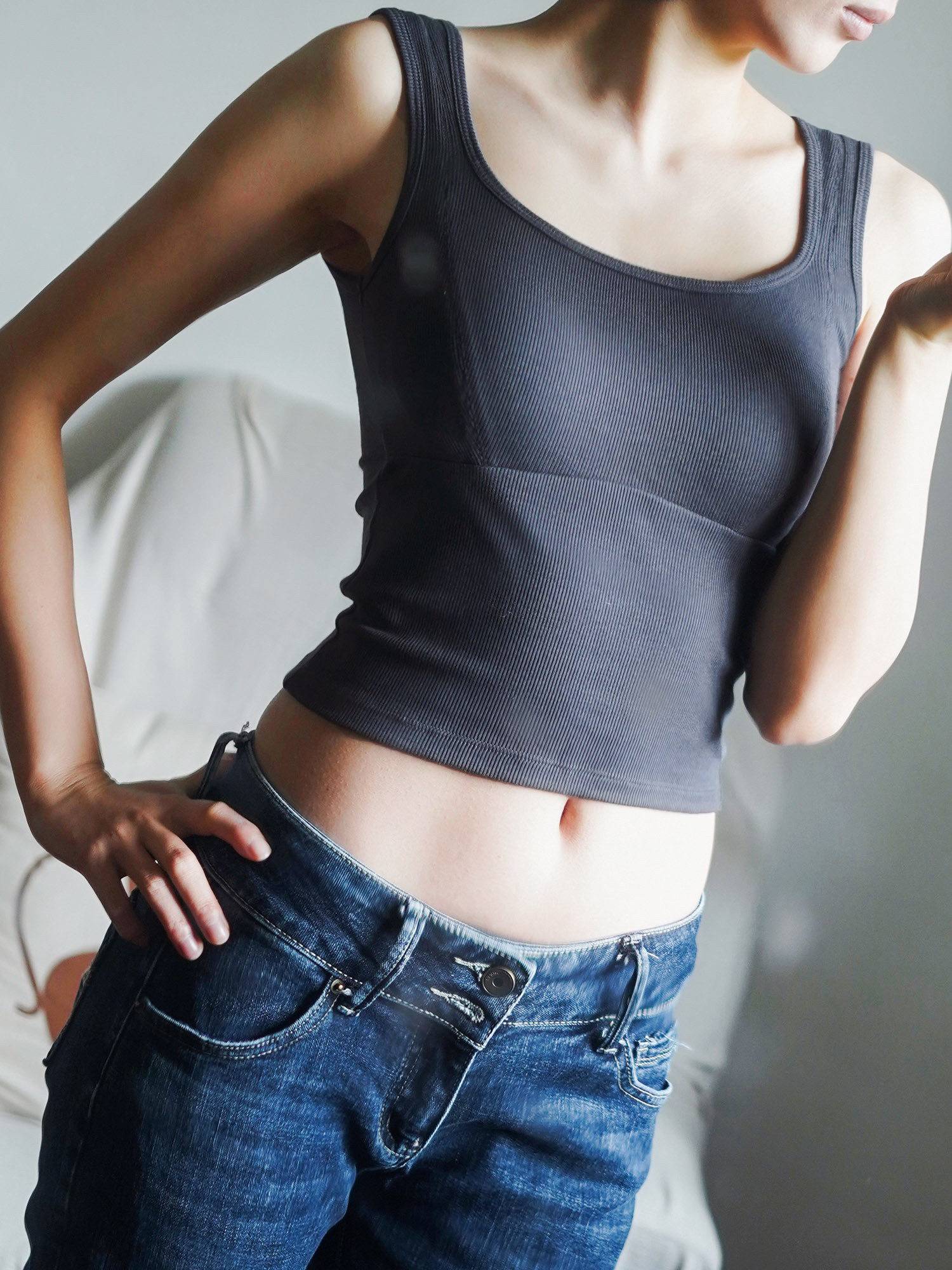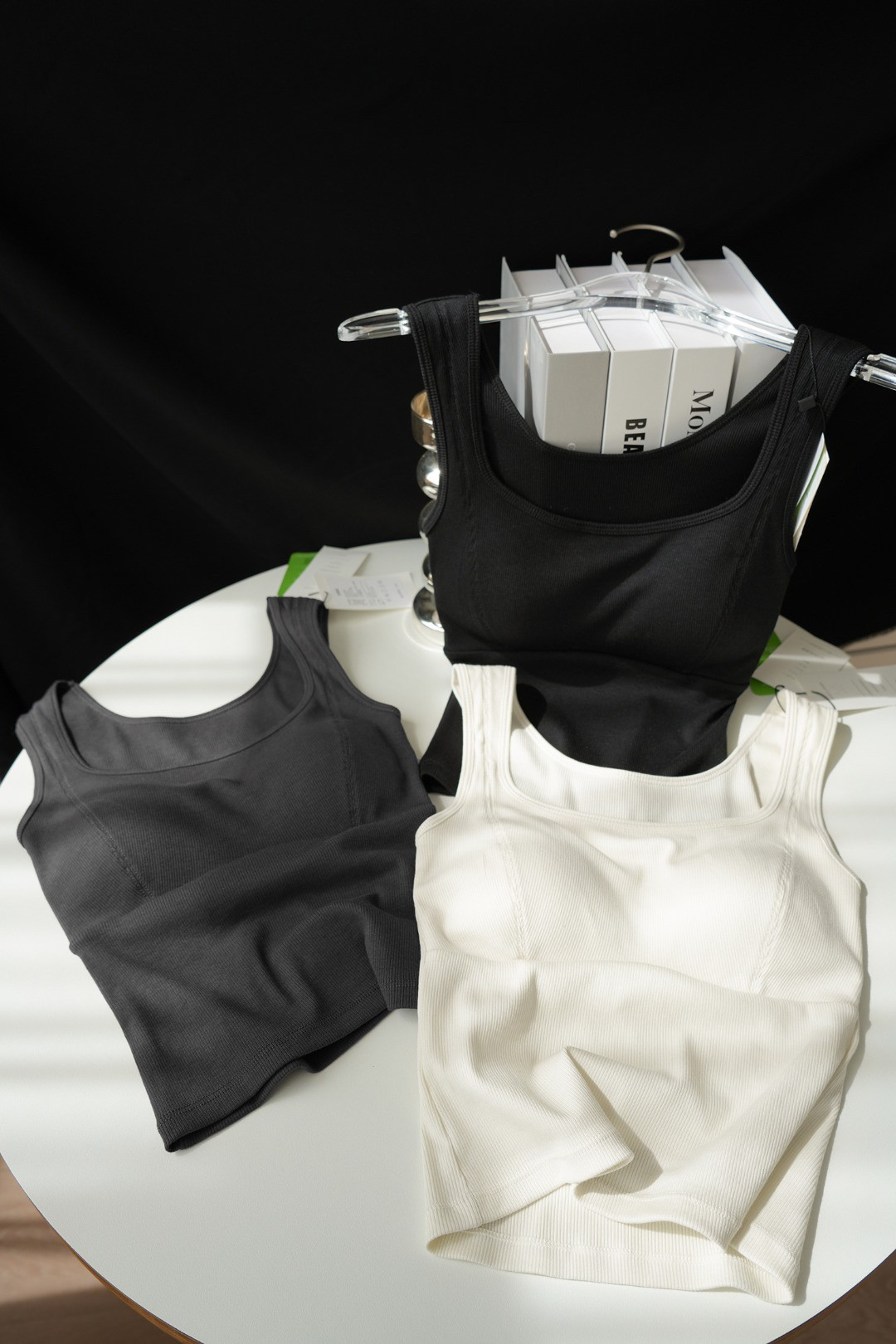 斯雨外贸华同款 方领宽肩带胸垫罗纹百搭基础打底优可丝棉外穿背心