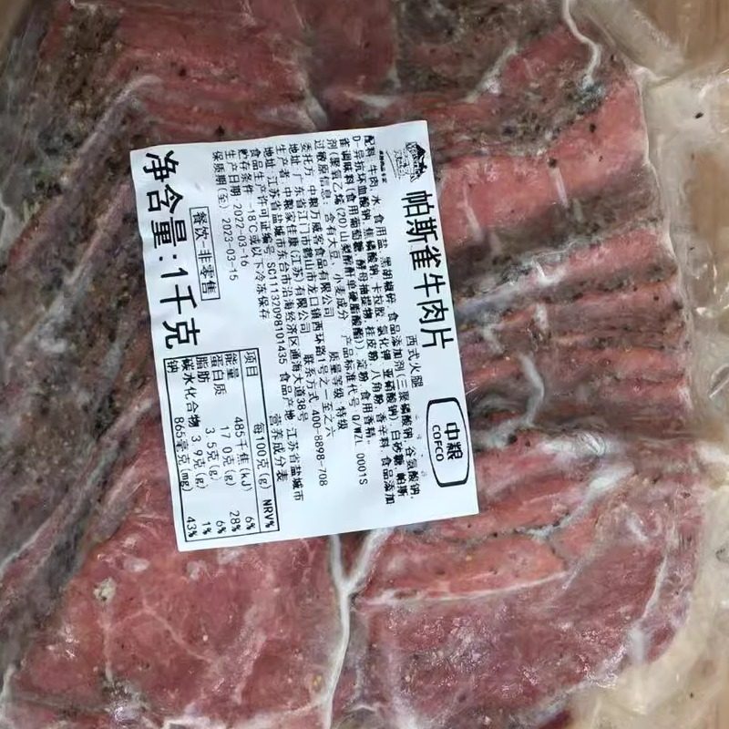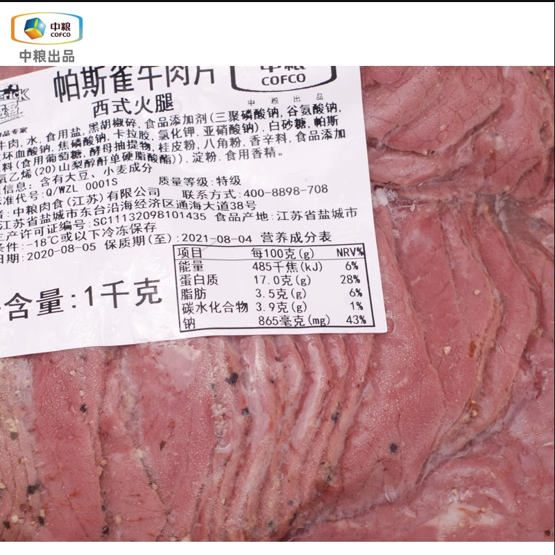 中粮万威客帕斯雀牛肉片1公斤沙拉轻脂肪健身零食即食家用商用