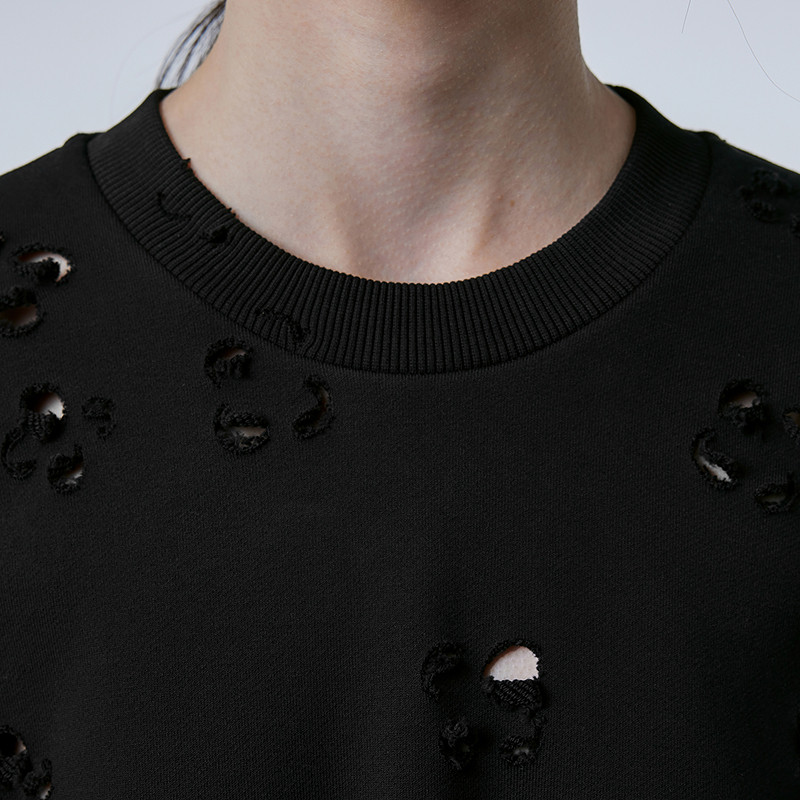 江南布衣春季 JNBY 镂空卫衣棉毛圈宽松休闲圆领长袖 早春上新