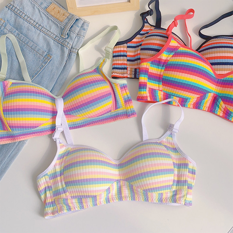 霓虹乐园 彩虹内衣女生无钢圈甜美学生少女多巴胺高中女文胸套装
