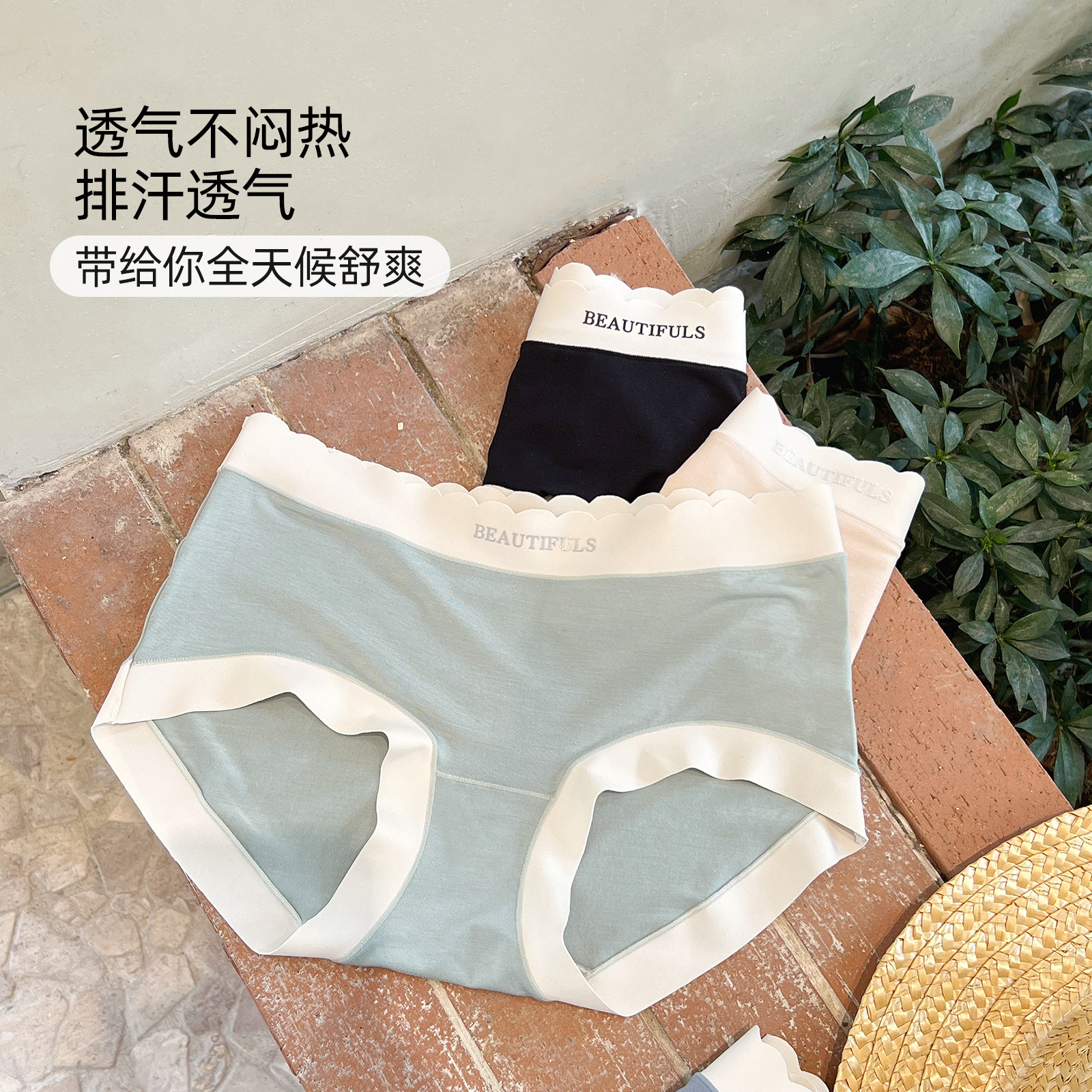 ubras莫代尔内裤 女士一体织纯棉7A级抗菌裆中高腰透气亲肤三角裤