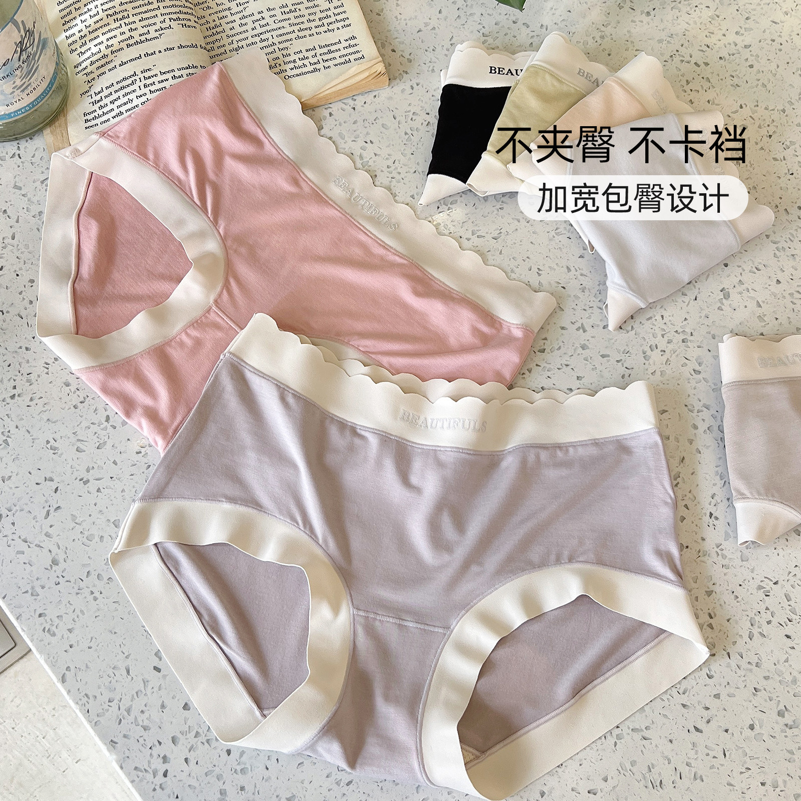 女士纯棉中腰女生内裤 不夹臀抗菌内裤 三角裤 新款 短裤 全棉时代内裤
