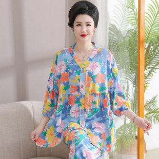 棉绸女装 可外穿家居服前扣夏装 妈妈睡衣女款 夏款 冰丝 2026新款 开衫