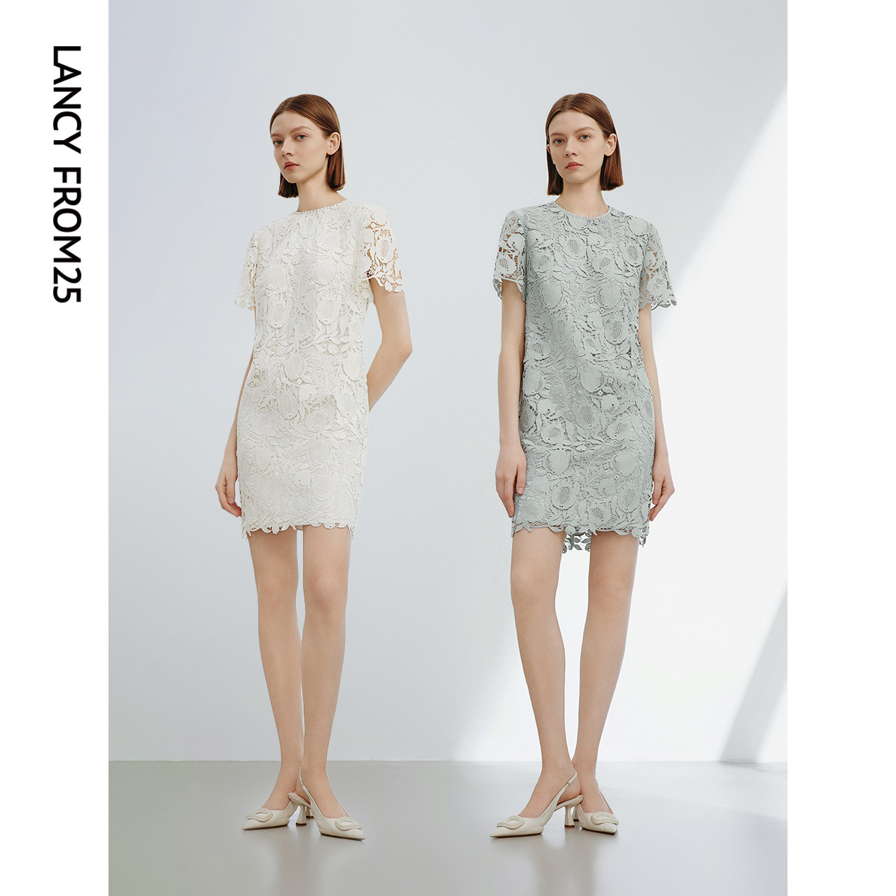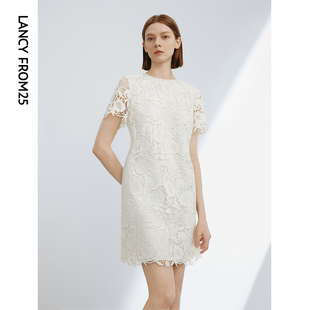高级感礼服裙子 新款 朗姿法式 设计感气质蕾丝a字连衣裙女2024夏季