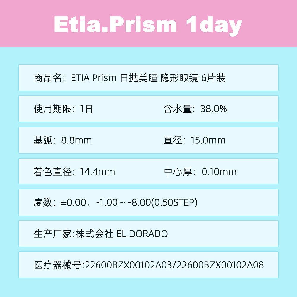 6片装 日本直邮Etia.Prism 彩色隐形眼镜 Cosplay美瞳 日抛美瞳