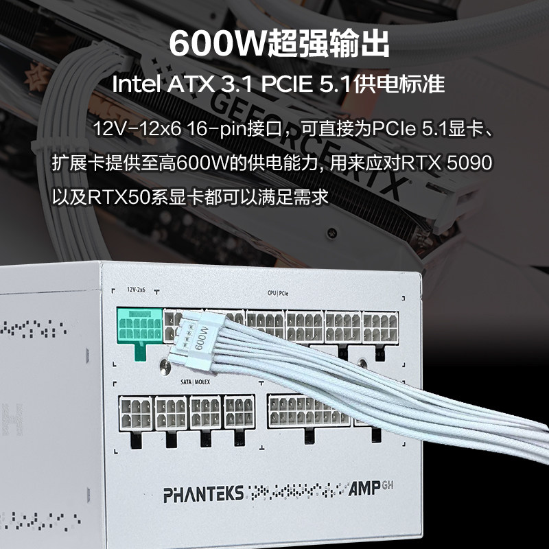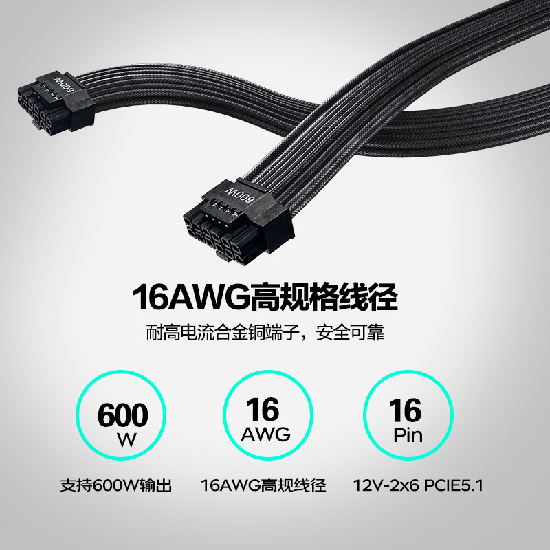 PHANTEKS追风者12V 5.1转接线 2x6模组16PIN电源线ATX3.1规范PCIE