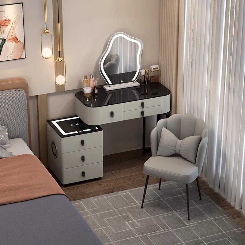 智能梳妆台2025新款 卧室现代简约实木收纳斗柜一体化妆桌轻奢高级