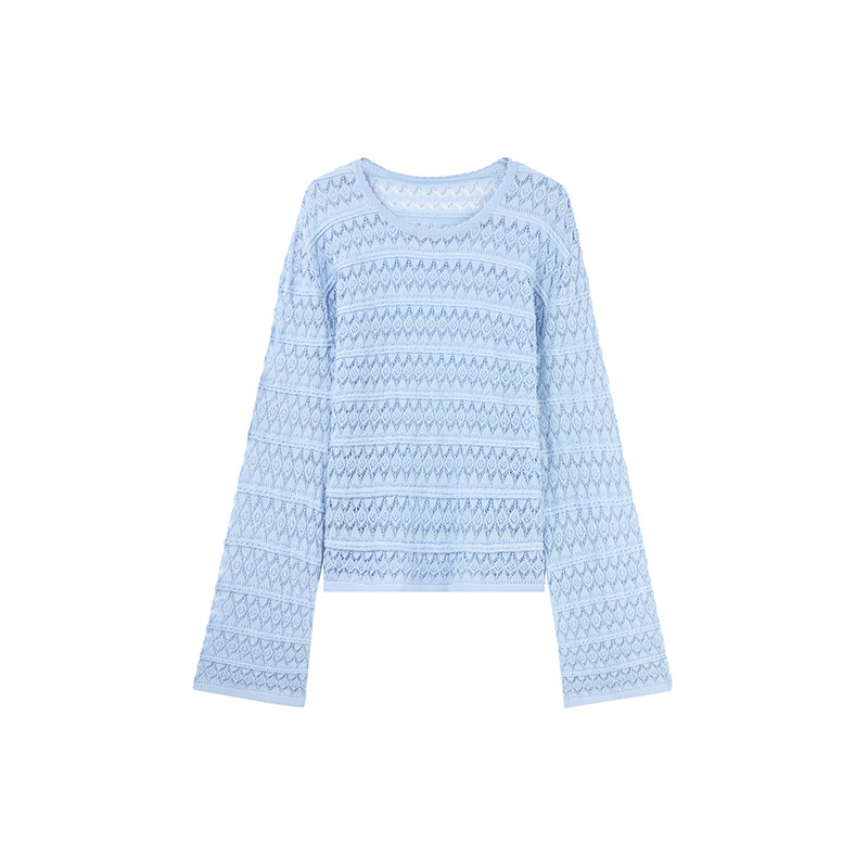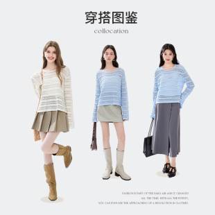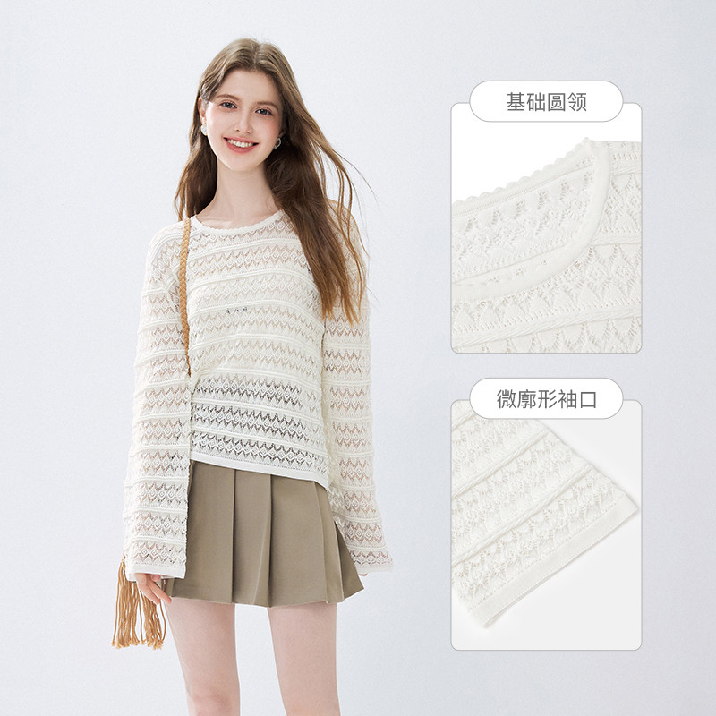 上衣外搭 休闲百搭罩衫 秋水伊人钩花镂空针织衫 女2025年初秋新款