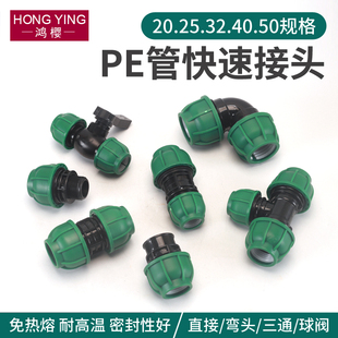 PE水管快接直接弯头三通等径异径接头农田灌溉活接头管件4分6分