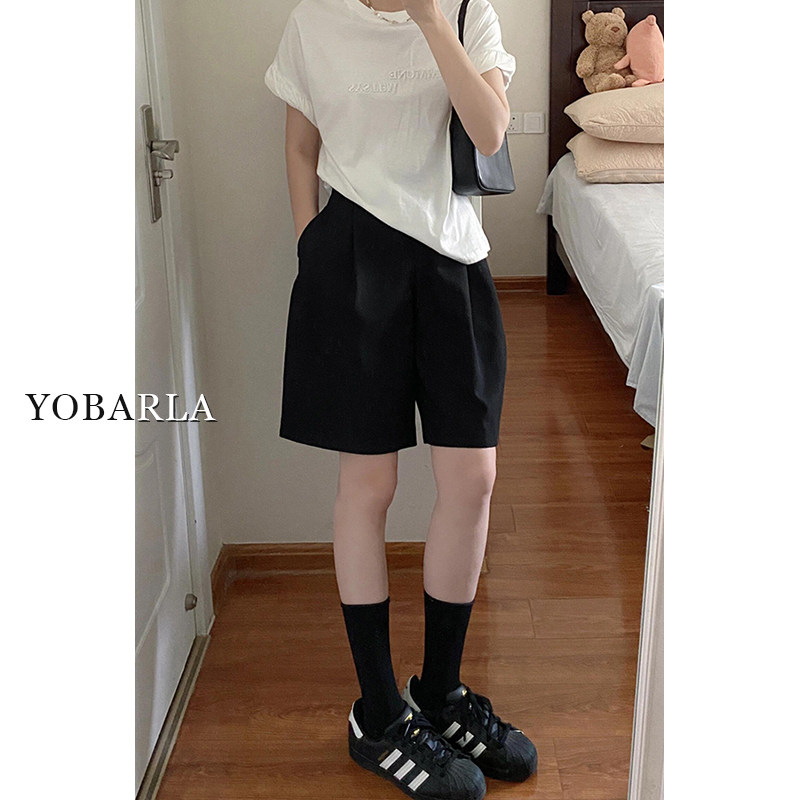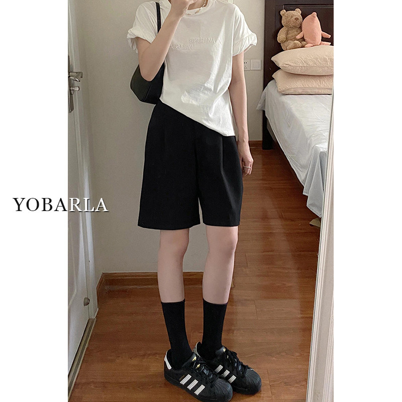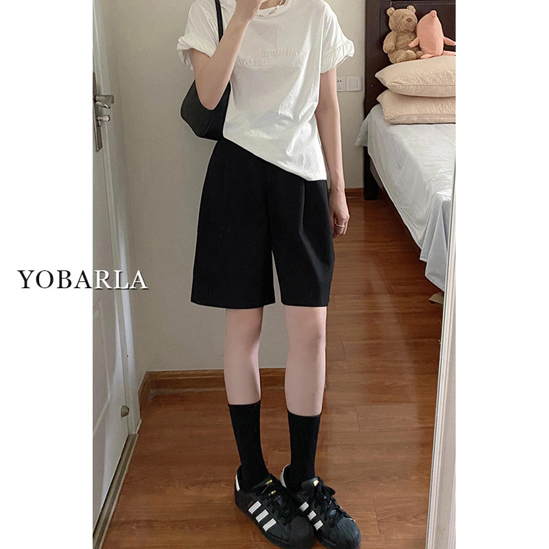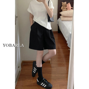 宽松显瘦梨形身材a字五分裤 黑色直筒休闲短裤 胖mm大码 薄款 女夏季