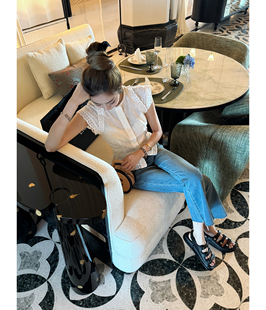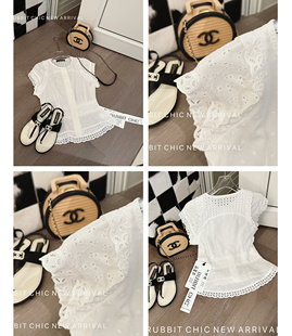 白衬衫 RUBBIT24夏季 精致小重工镂空短袖 法式 气质收腰上衣女 新品