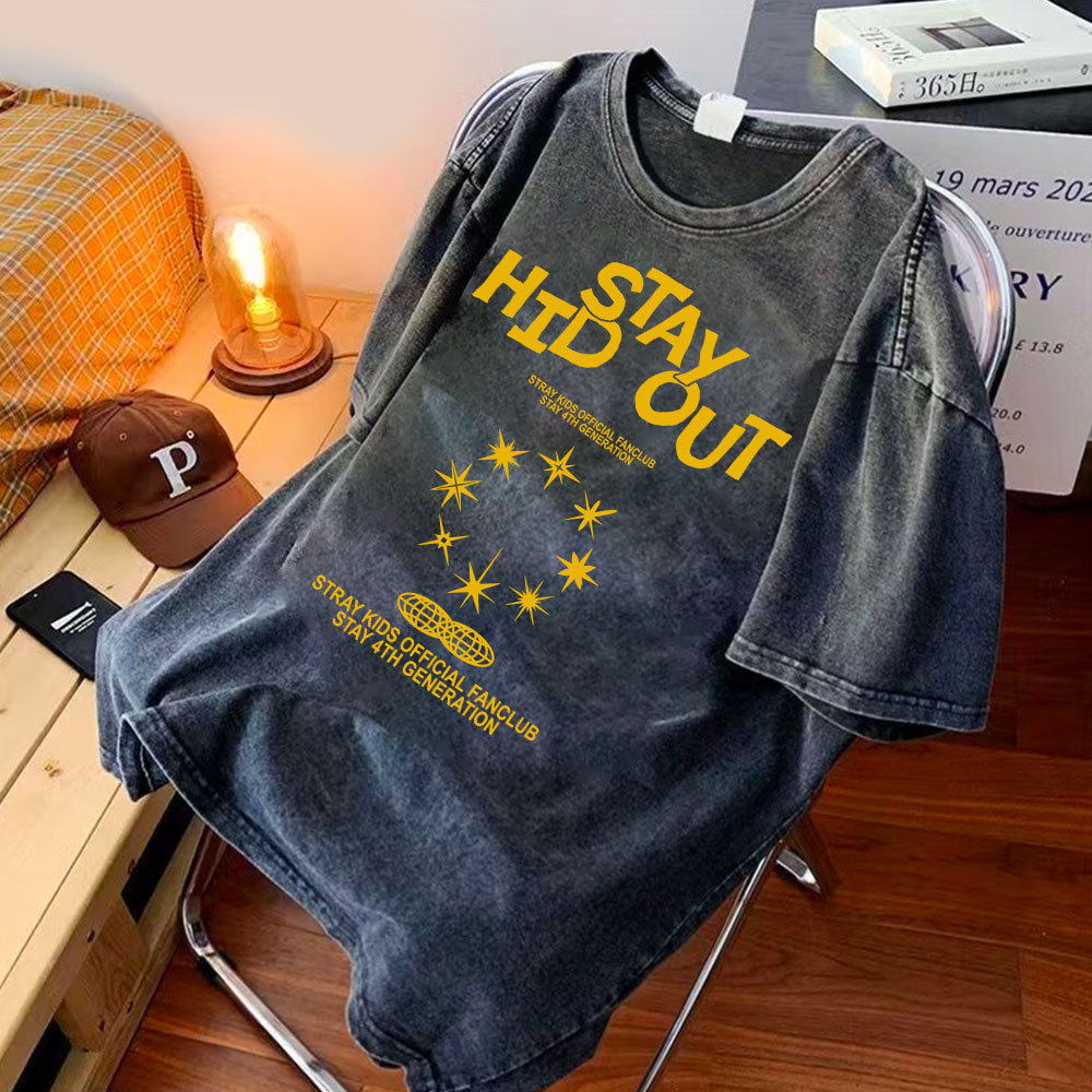 上衣夏季 stay复古青年高街T恤衫 衣女t kids水洗短袖 流浪小孩stray