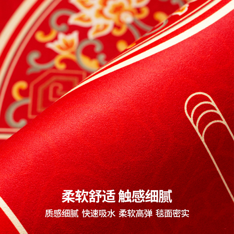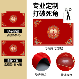 喜字结婚喜庆硅藻泥入户门地垫婚房门口进门家用脚垫入户红色地毯