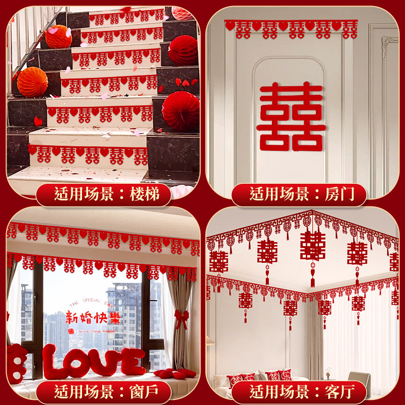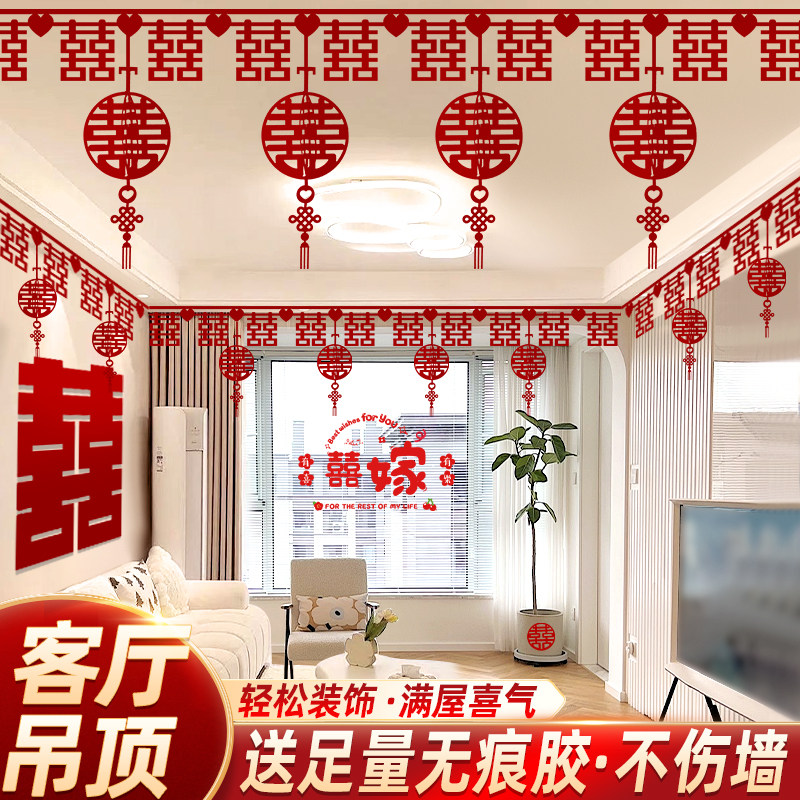 婚房布置套装 饰女方新房卧室客厅喜字挂饰婚礼结婚拉花 男方吊顶装