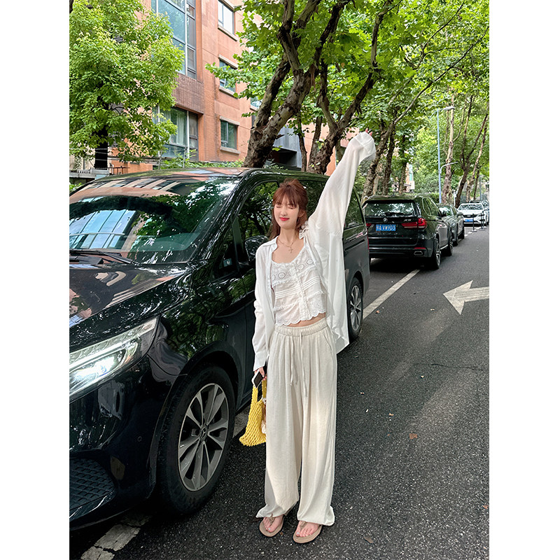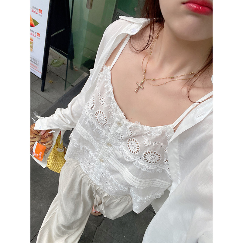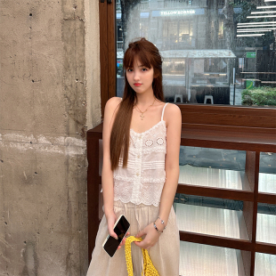 WANNANKE 少女感蕾丝镂空花边吊带小背心 人间白茶