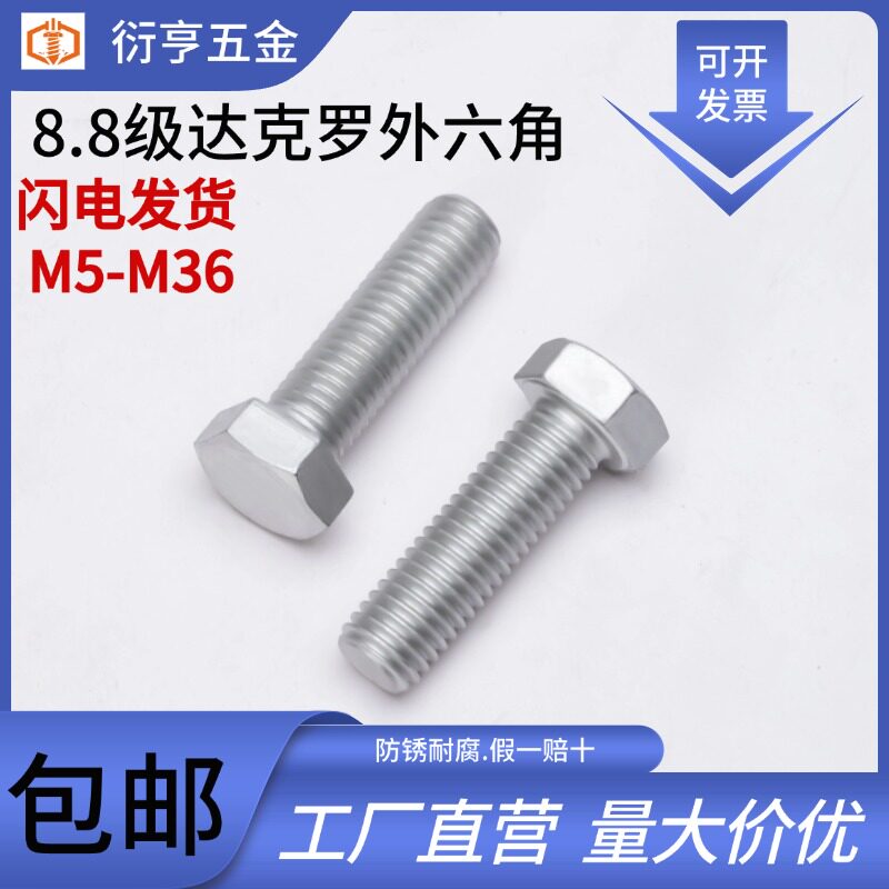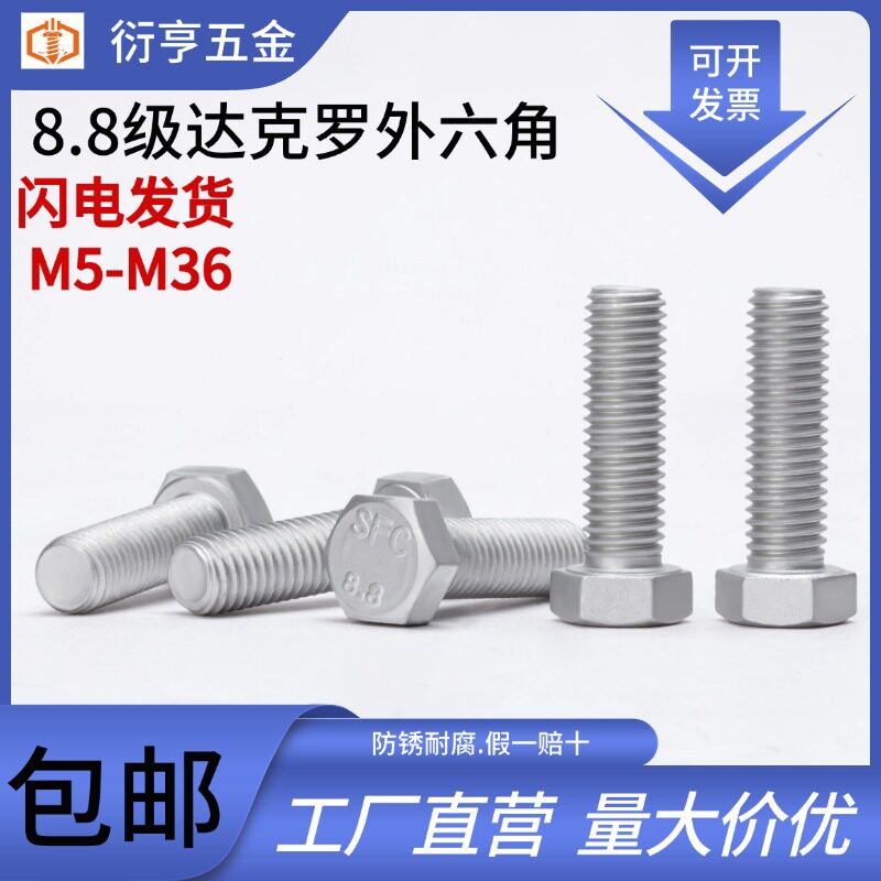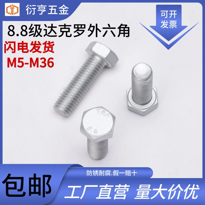 8.8级达克罗外六角螺丝GB5783M5M6M8M10M12M14M16M20M24M30M36