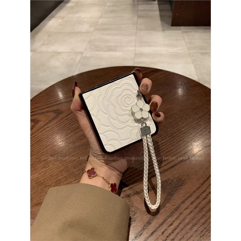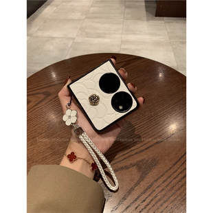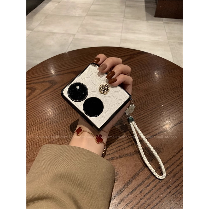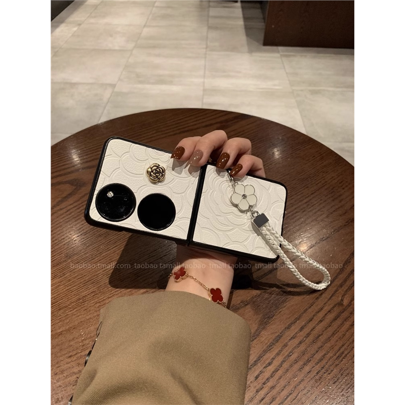 全包防摔 S折叠屏保护套香风p50pocket时尚 适用华为pocket2手机壳气质山茶花皮质新款 女高档带饰品挂绳pocket