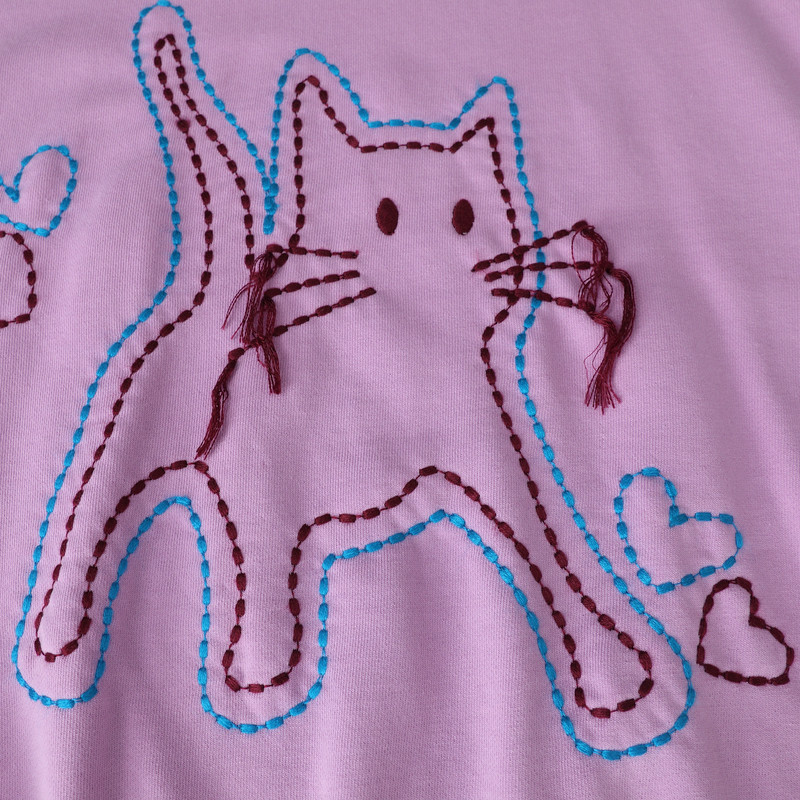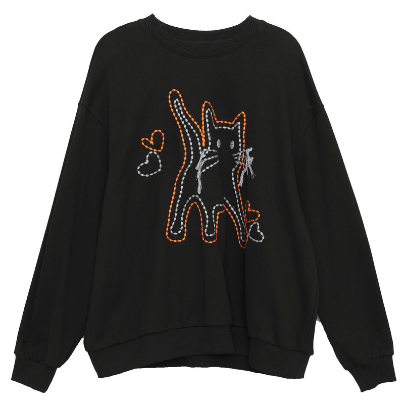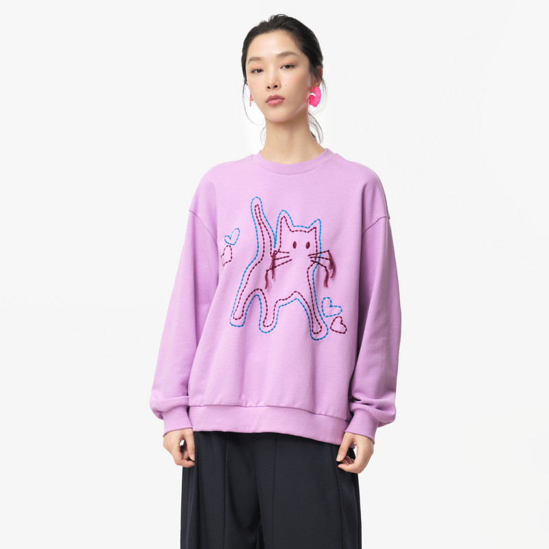 卫衣女 .FUN系列圆领毛线猫咪绣花设计短款 MOVEUP幻走2024秋季 新款