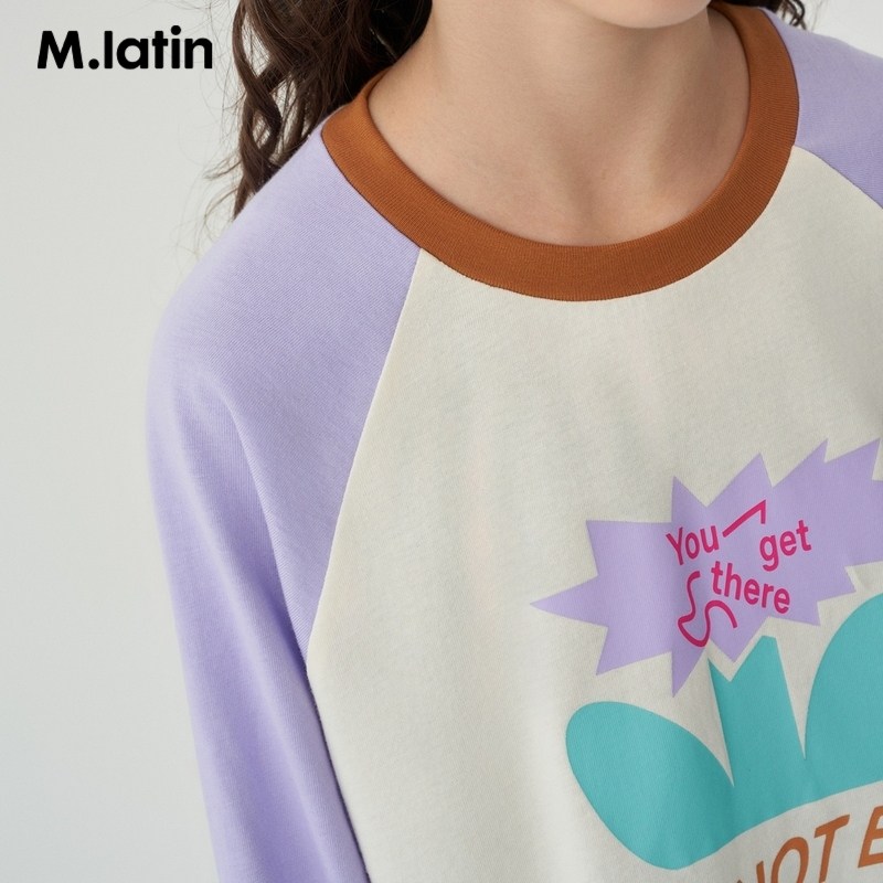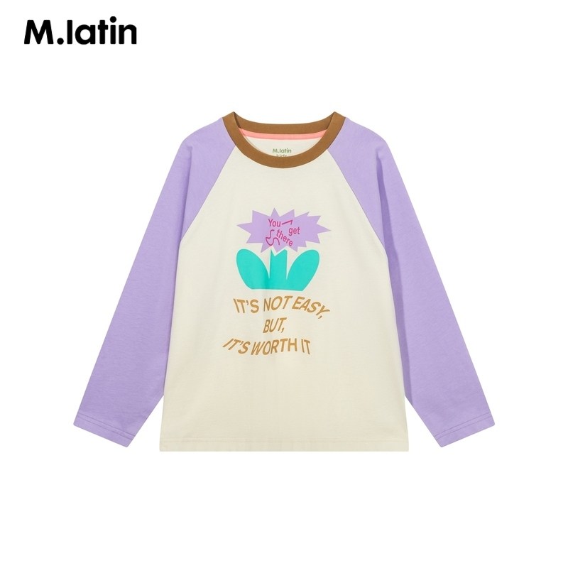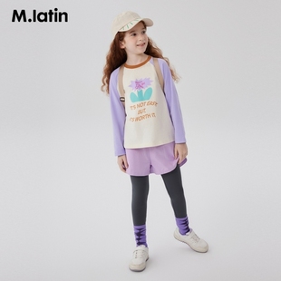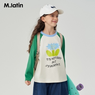 女童大童拼色插肩宽松撞色长袖 新款 T恤 儿童T恤2024春装 马拉丁童装