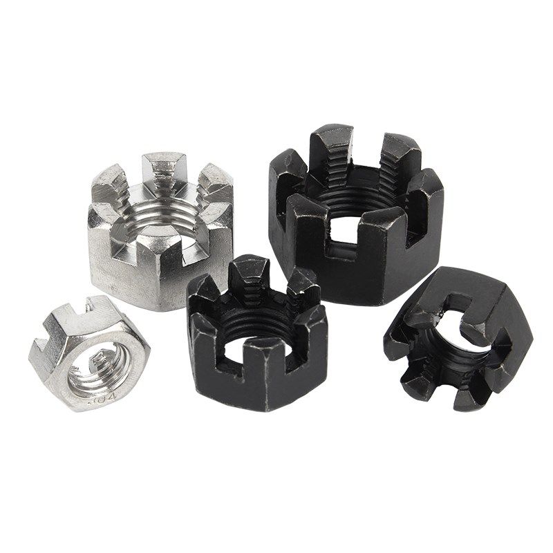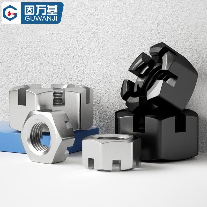 GB58粗牙 细牙六角开槽螺母碳钢槽型螺帽带槽螺丝帽M6M8M10M12M14