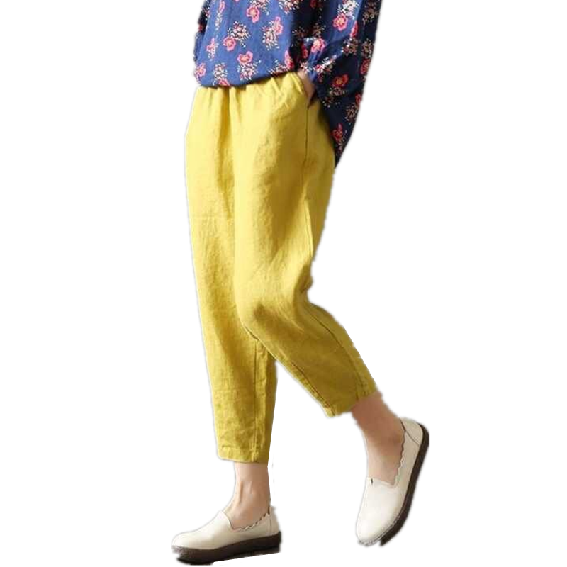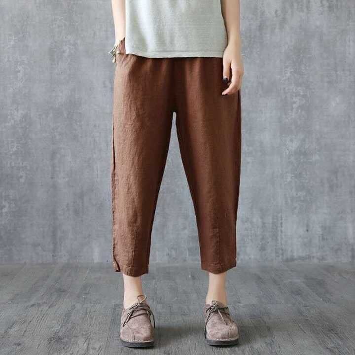 子韩版 宽松显瘦直筒裤 夏季 棉麻休闲裤 九分哈伦裤 裤 薄款 女2025新款