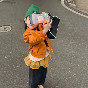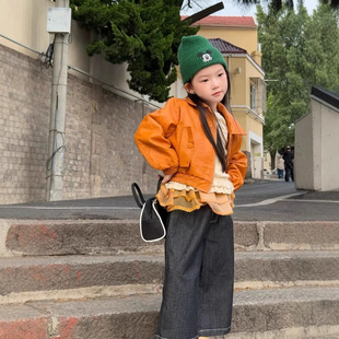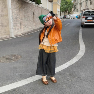 黄色夹克上衣 女孩时髦洋气机车皮衣宝宝短款 儿童外套秋装 2025新款