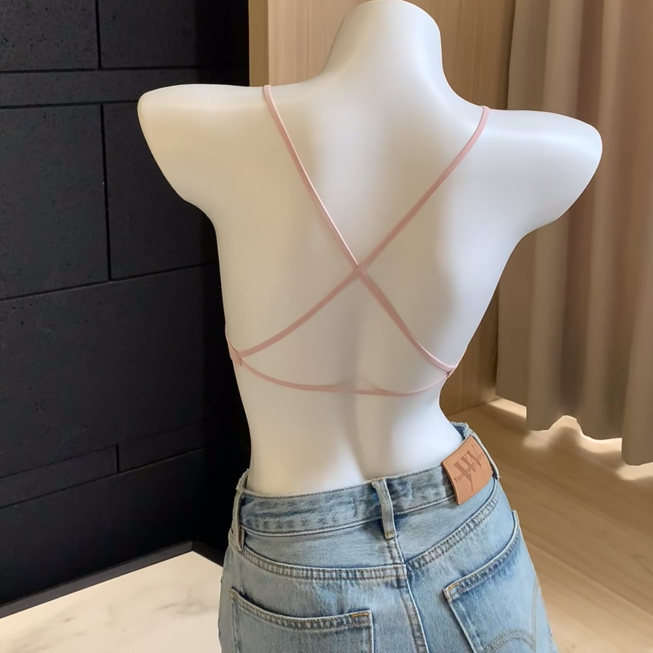 细肩带交叉美背内衣女性感粉底液夏季 无痕无钢圈小胸聚拢文胸 薄款