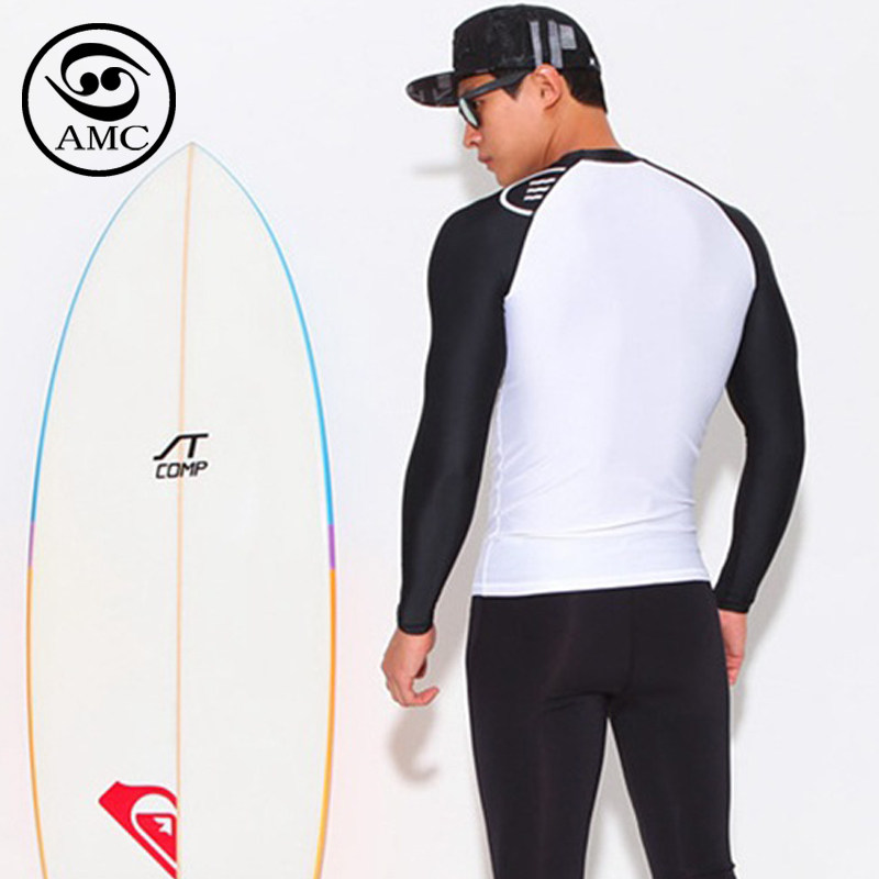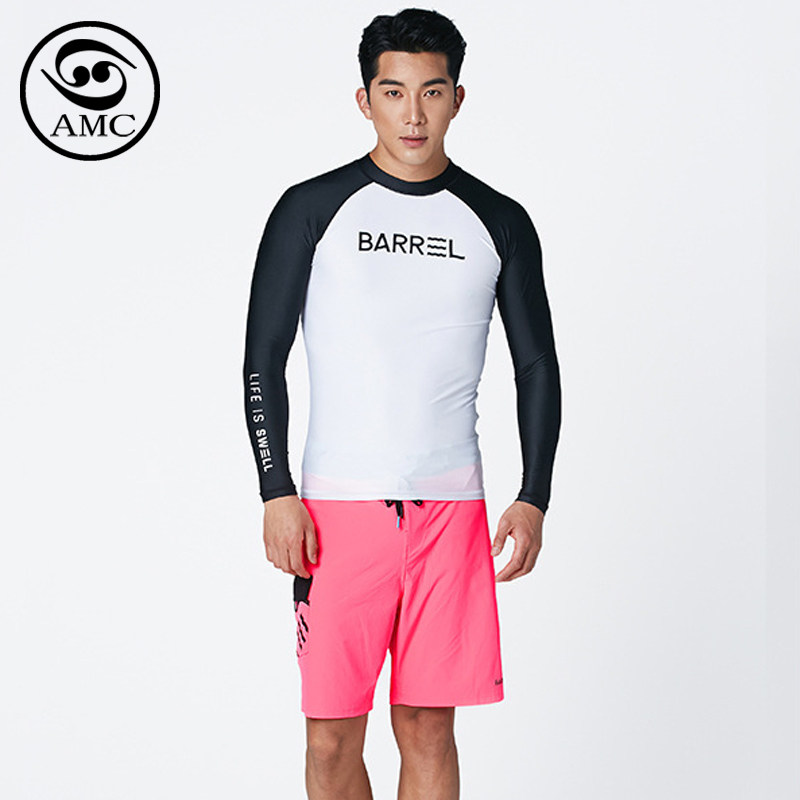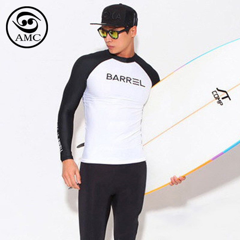 男子运动套头字母速干衣分体防晒长袖 上衣 冲浪衣紧身潜水浮潜泳装