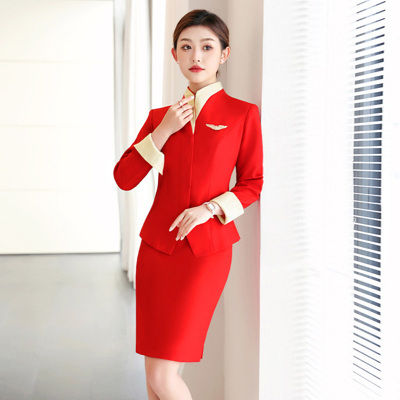套装 空乘制服女大红色西装 套裙高档酒店餐饮工作服迎宾礼仪新中式