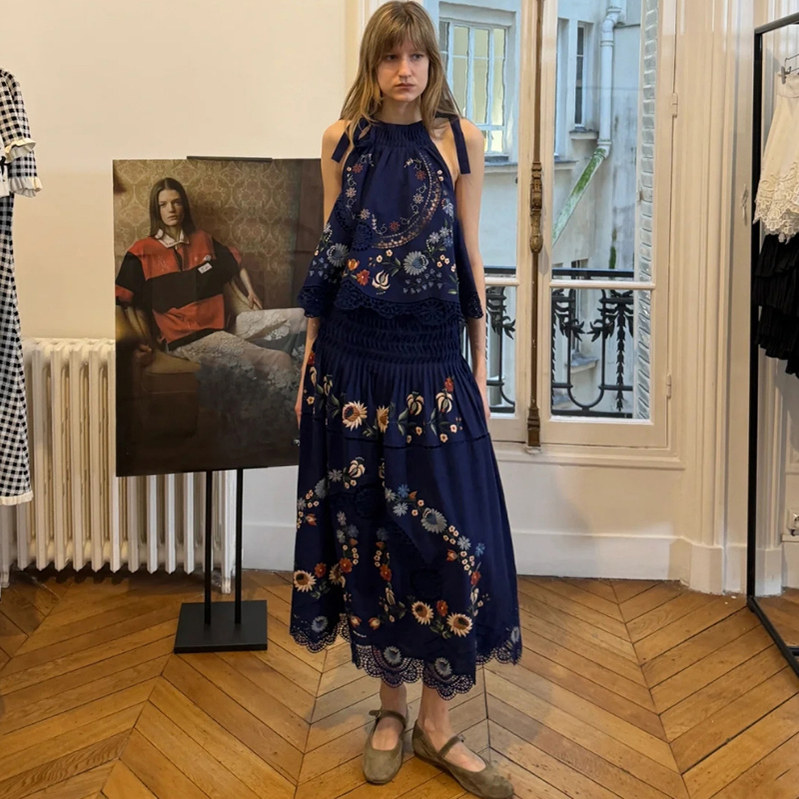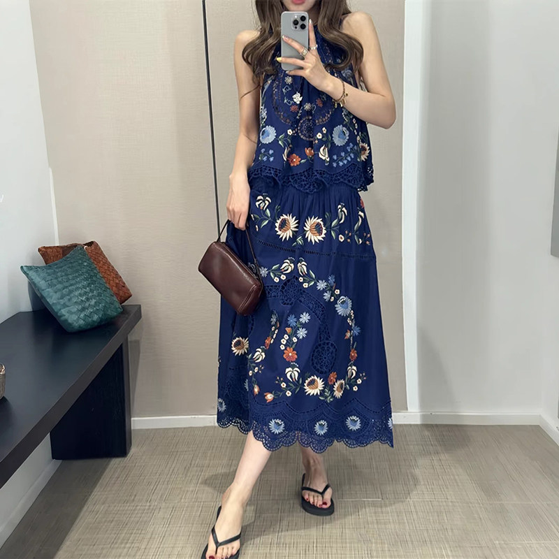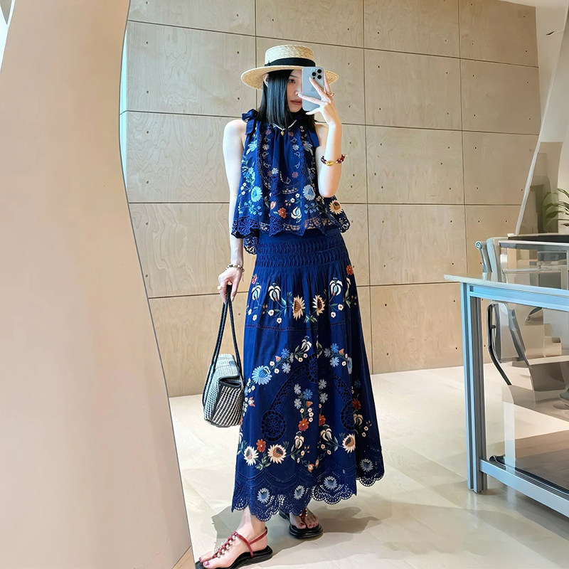 2025早秋轻奢波西米亚花十字绣重工吊带半身裙套装 法式 小众