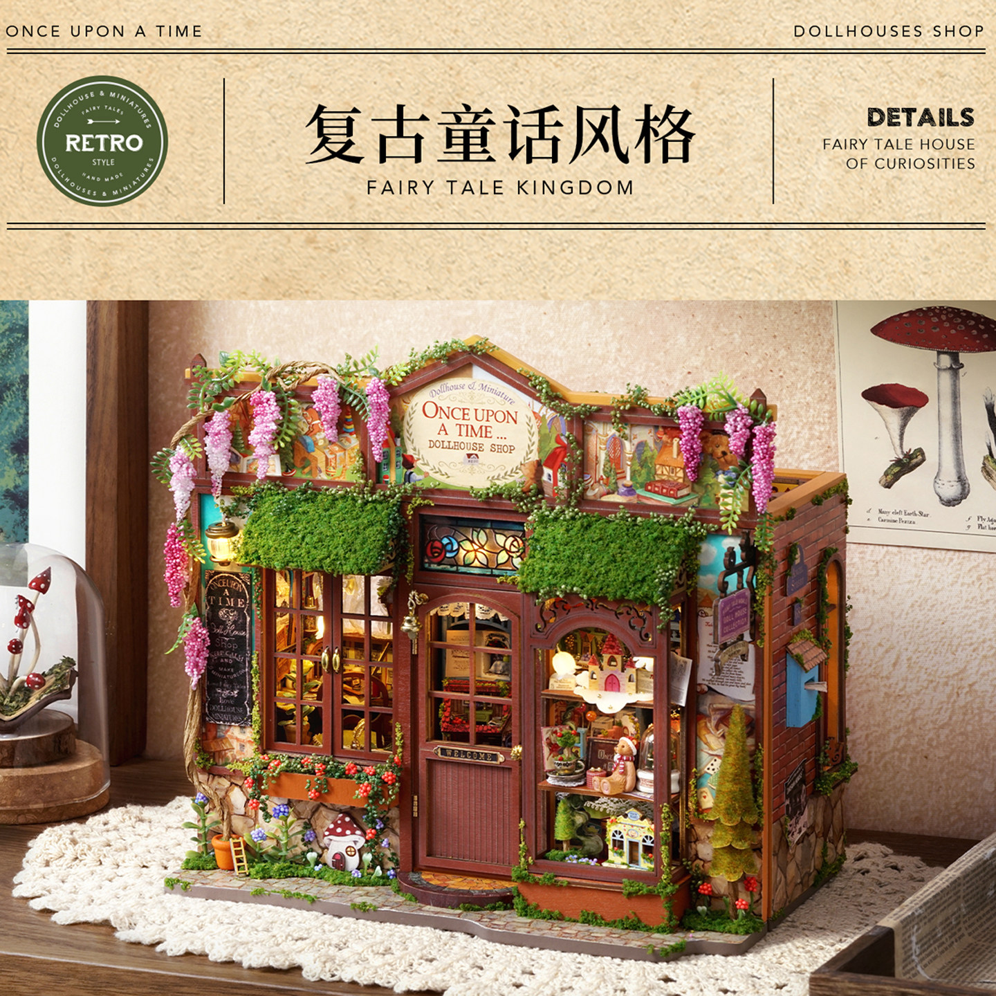 diy小屋复古风丛林么么茶手工制作房子建筑模型拼装 玩具生日礼物