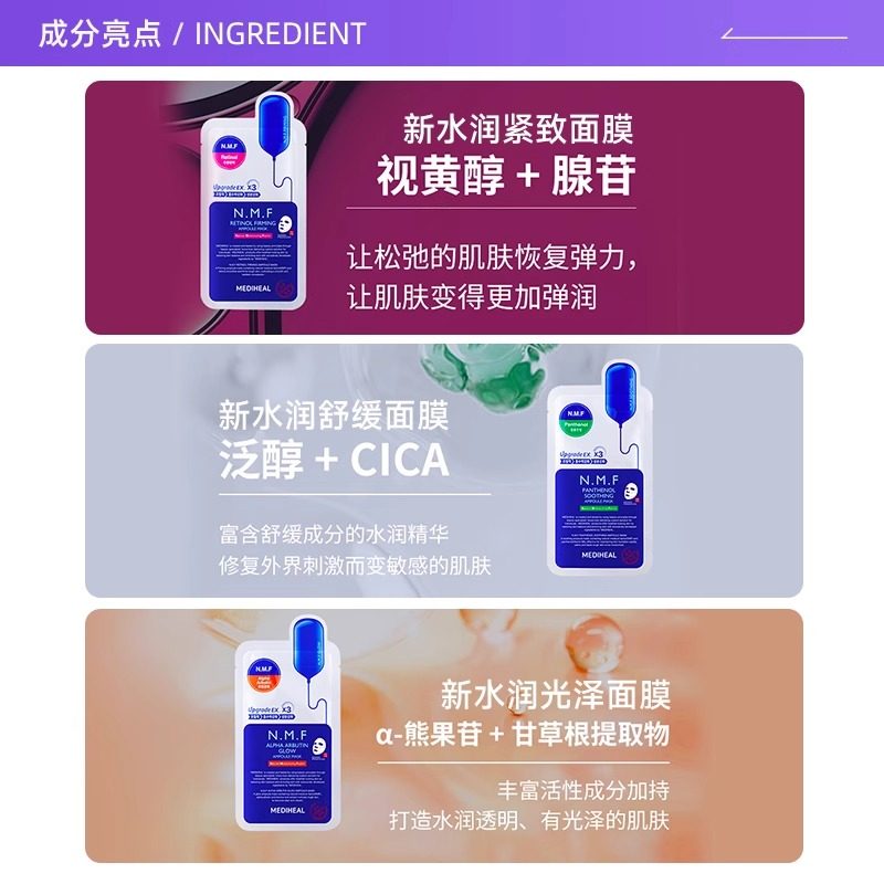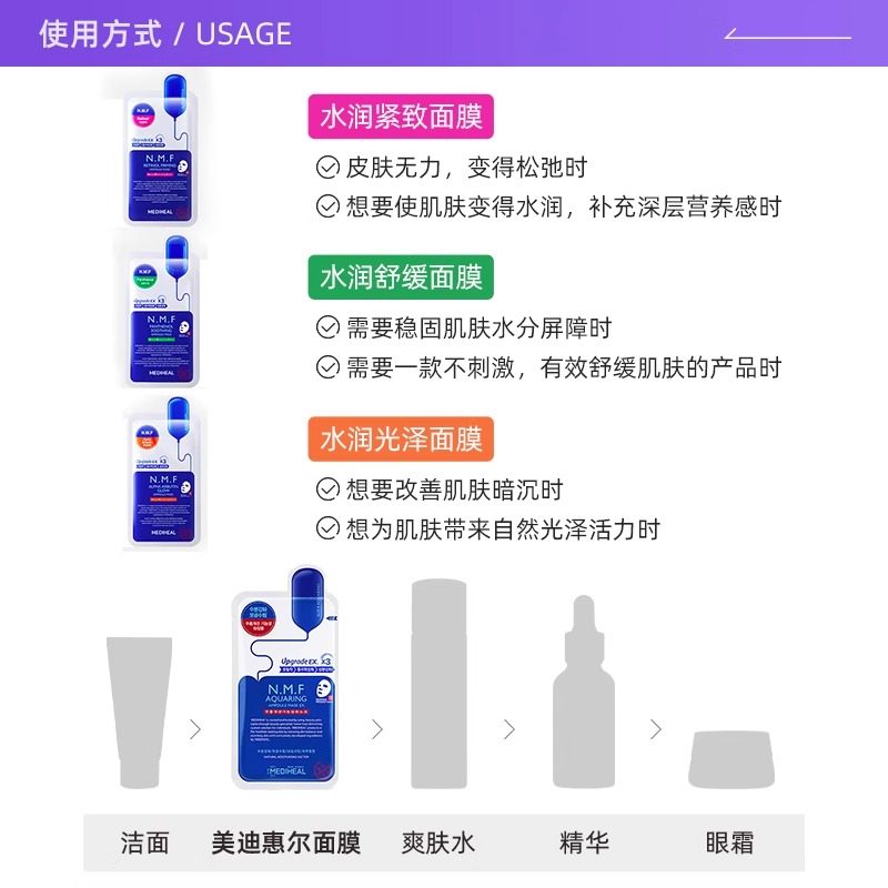 弹嫩焕亮提亮肤色正品 美迪惠尔NMF水库PRO面膜补水保湿 自营