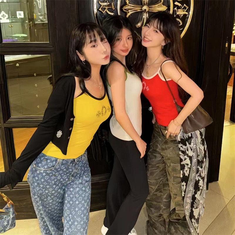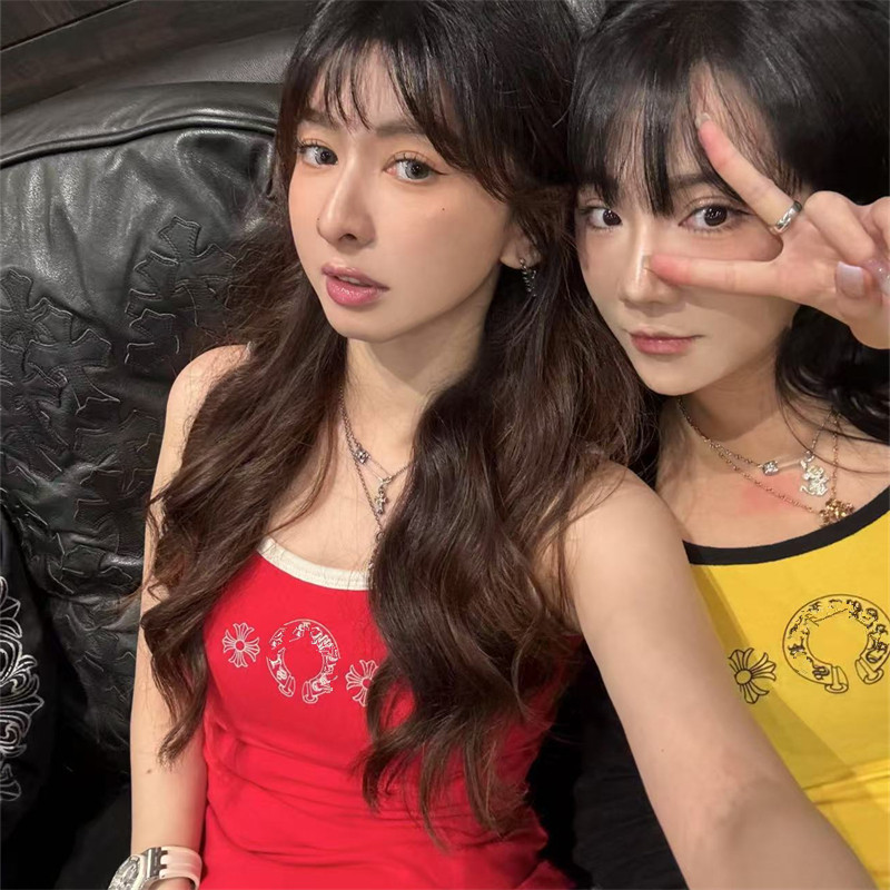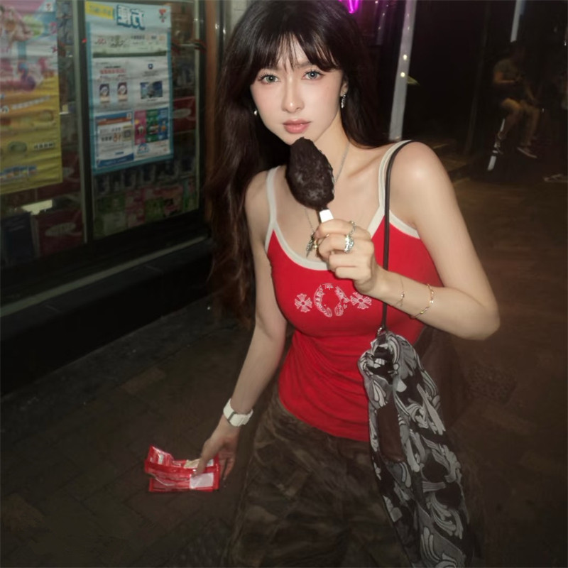 吊带辣妹纯欲背心 复古亚比风马蹄印花拼色多巴胺辣妹修身 夏季 新款