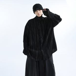 「GRNL」线性叙事 复古立体褶皱肌理廓形翻立领衬衫