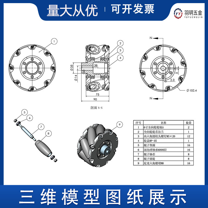 万向轮麦轮全向轮麦克纳姆轮Mecanum智能小车配件ROS车轮TT电机