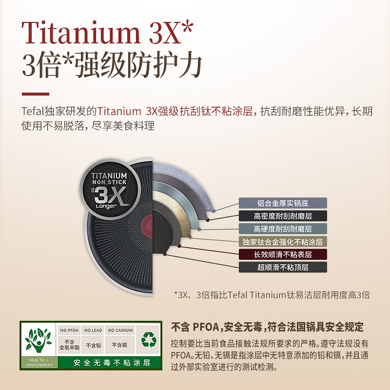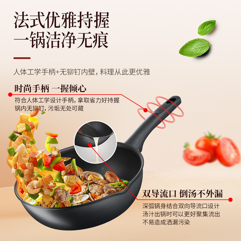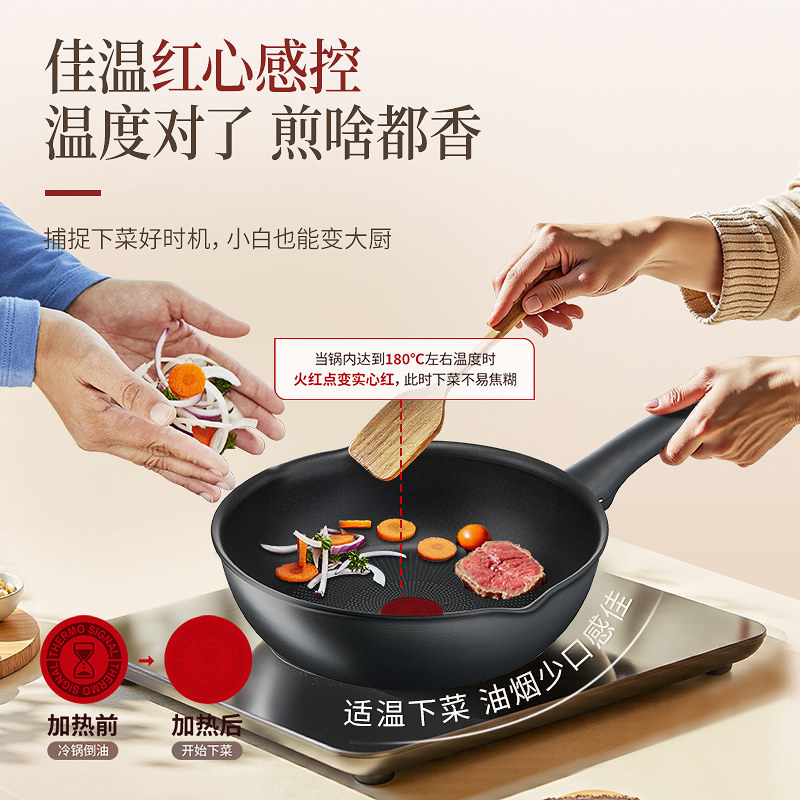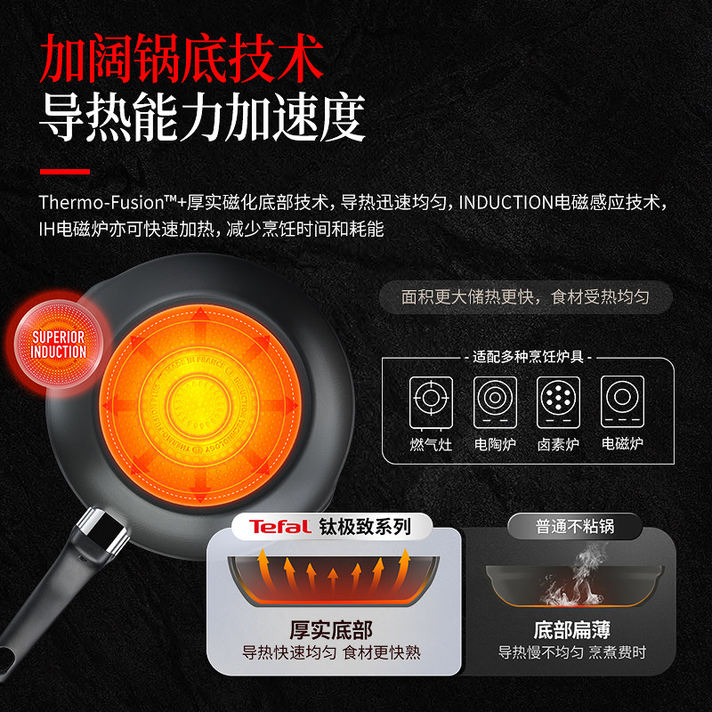 Tefal特福钛涂层不粘炒锅家用平底多功能炒菜锅少油烟电磁炉煎锅